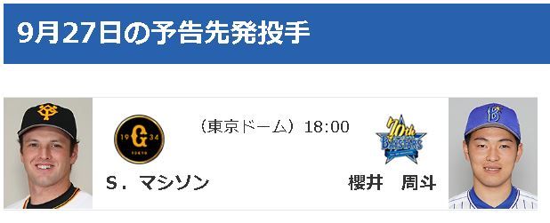 明日は櫻井山本バッテリー、4番細川、上茶&中川虎が中継ぎ待機やね