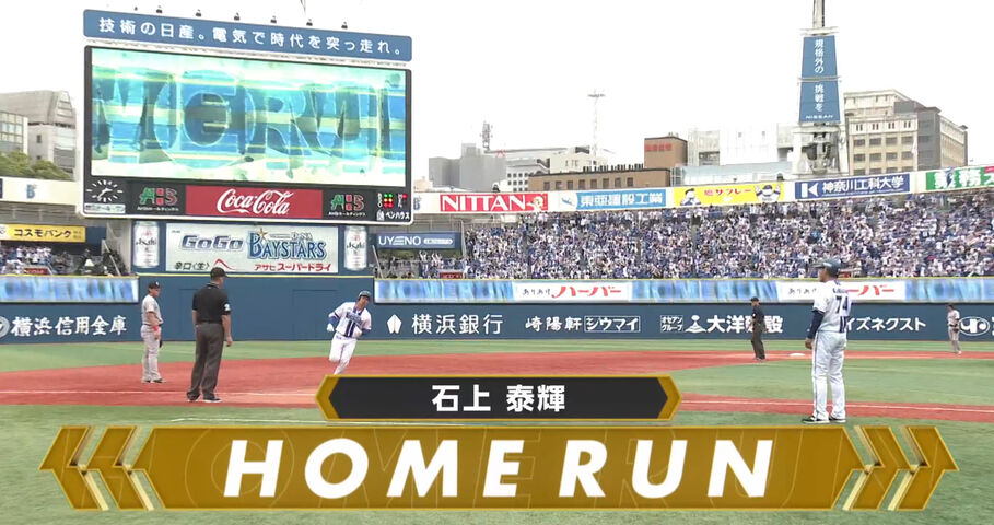 力強く振り抜いた打球は大声援にも後押しされ、レフトポール際へ飛び込んだ!🌈🌈🌈#石上泰輝 選手の3ランアーチが飛び出し、試合を振り出しに戻す!💪💪💪