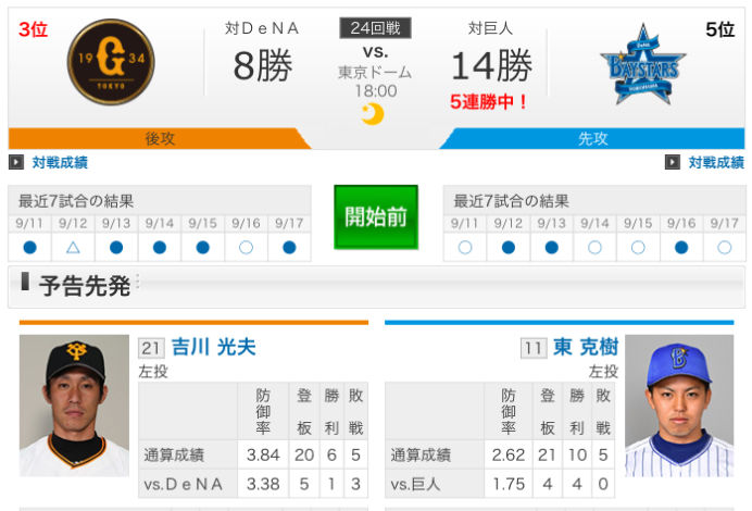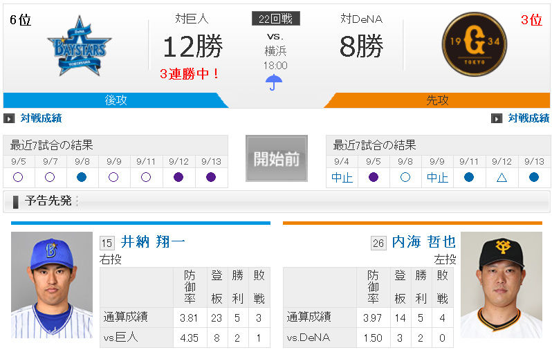 [2018/9/14] DeNAベイスターズvs読売ジャイアンツ 18:00~