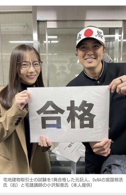 元巨人DeNAの宮国椋丞、宅建1発合格!「相当な覚悟」で難関突破、不動産業で第2の人生 2024年11月28日 カテゴリ:宮国椋丞 1: 名無しさん 2024/11/27(水) 18:25:14.715 ID:laTOj.fD. 野球界から不動産業界へ-。元巨人、DeNAの宮国椋丞氏(32)が、宅地建物取引士(宅建士)の試験を1発合格した。昨オフにDeNAから戦力外通告を受け、現役を引退。野球界を離れ、現在は主に不動産業に従事しながら、4月から勉強を開始。1日約2~3時間机に向かって、試験直前は10時間以上の猛勉強で見事に突破した。「ホッとしているのが正直な気持ちですし、応援やサポートしてくださった方々に感謝したいです。これからがスタートなので、より一層頑張りたいなと思います」※続きは上記リンク元より 2: 名無しさん 2024/11/27(水) 18:25:53.035 ID:bZ5IE.K3I よかおめ 続きを読む タグ :#宮国椋丞#宅建