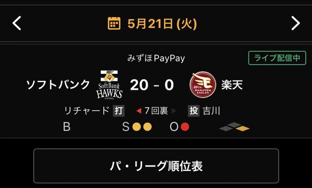 楽天がソフトバンクに21失点の大敗 現役ドラフトで移籍の櫻井周斗も1回を投げ6失点… 2024年05月22日 カテゴリ:桜井周斗ニュース・話題 282: 名無しさん 24/05/21(火) 20:50:55 ID:Bk.tt.L25 みずぺい21-0で終了 285: 名無しさん 24/05/21(火) 20:51:18 ID:zx.cf.L13マジで無抵抗やったんか(驚愕 258: 名無しさん 24/05/21(火) 20:48:42 ID:vj.ag.L36 【悲報】櫻井周斗 試合前0.00→11.57 続きを読む