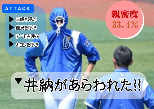 >(囲んでいる記者の中に、ペンとメモを持った井納が紛れ込んでいることに気付いて)「おまえにオレの言動をチェックされるようになったら終わりだよ!」「去年はアイツ、会話がかみ合わなかったもんな。それだけでも人間としてだいぶ進歩したよ」