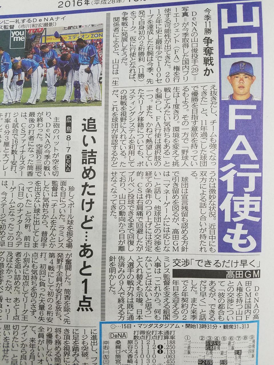 日シリ終わったら即宣言って記事出てたけど石川柊FA宣言へ記事出たわね